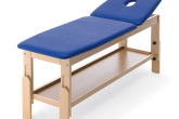 Liege für Untersuchungen und Behandlungen aus massivem Buchenholz mit zwei Abschnitten und fester Höhe von 78 cm. Die Abschnitte weisen eine Standardbreite von 68 cm auf. Das Kopfteil ist bis zu positiv 45° manuell verstellbar. Bei diesem Modell ist das Kopfteil mit Loch Nase-Mund ausgestattet. Es ist möglich, den entsprechenden Verschluss separat zu bestellen. Die Liege verfügt über einen praktischen Unterbau.
