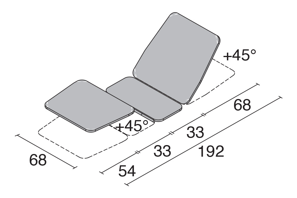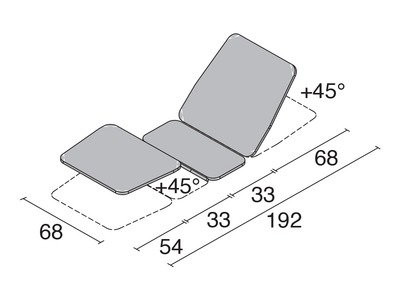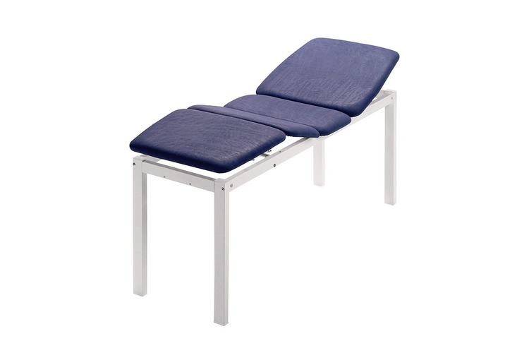 Liege aus Metall für Untersuchungen und Behandlungen mit vier Abschnitten und fester Höhe von 78 cm. Die Abschnitte weisen eine Standardbreite von 68 cm auf. Die beweglichen Abschnitte sind manuell verstellbar. Im Kopfteil ist kein Loch für Nase/Mund vorhanden.