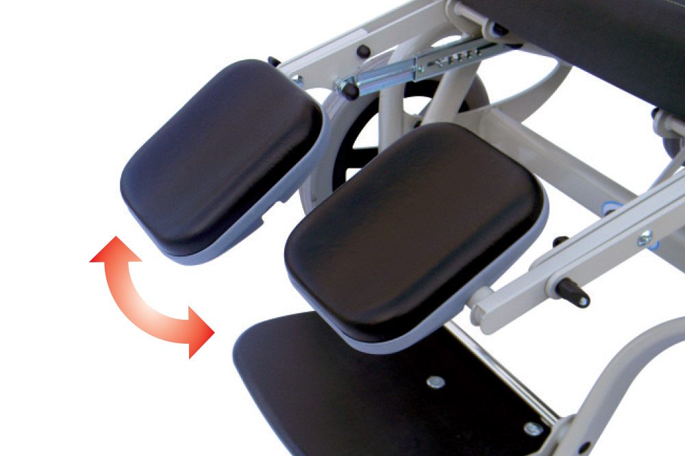 Für den Komfort des Patienten in der Ruheposition können die Beinstützen in der Tiefe separat verstellt werden. Die Kniestütze ist in der Neigung verstellbar, um sich an den unteren Extremitäten anzupassen.